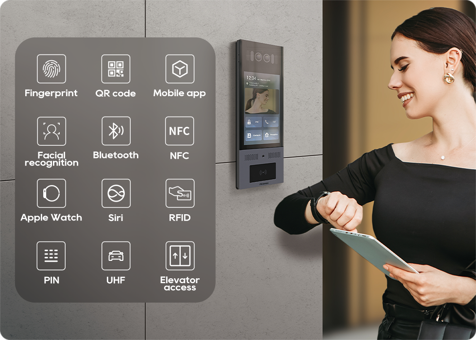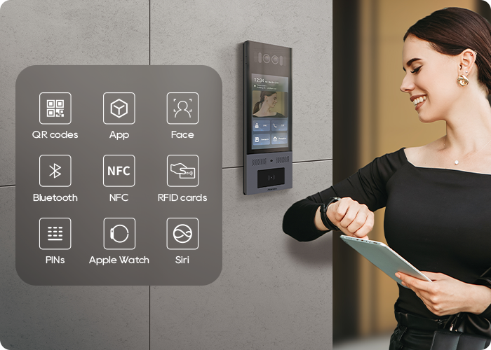 NFC, RFID cards, PIN codes, Apple Watch, and Siri integration.