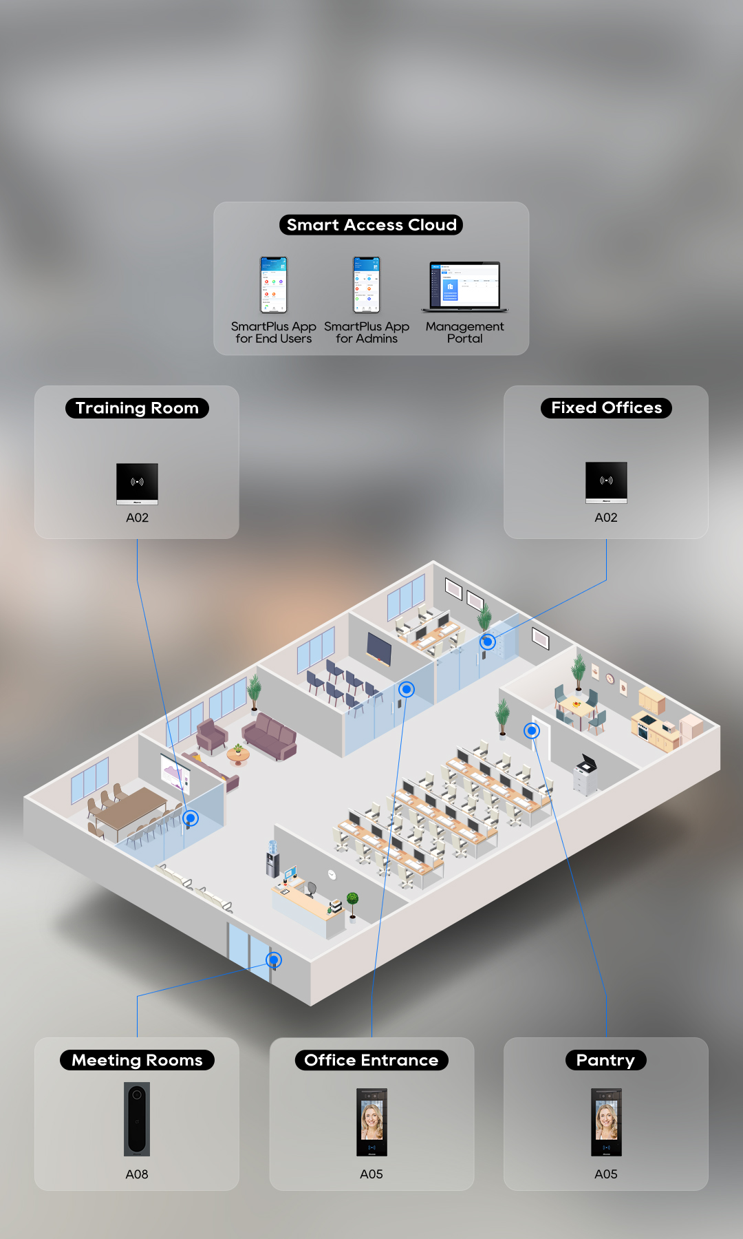 fixed desks, and meeting rooms in the Akuvox
